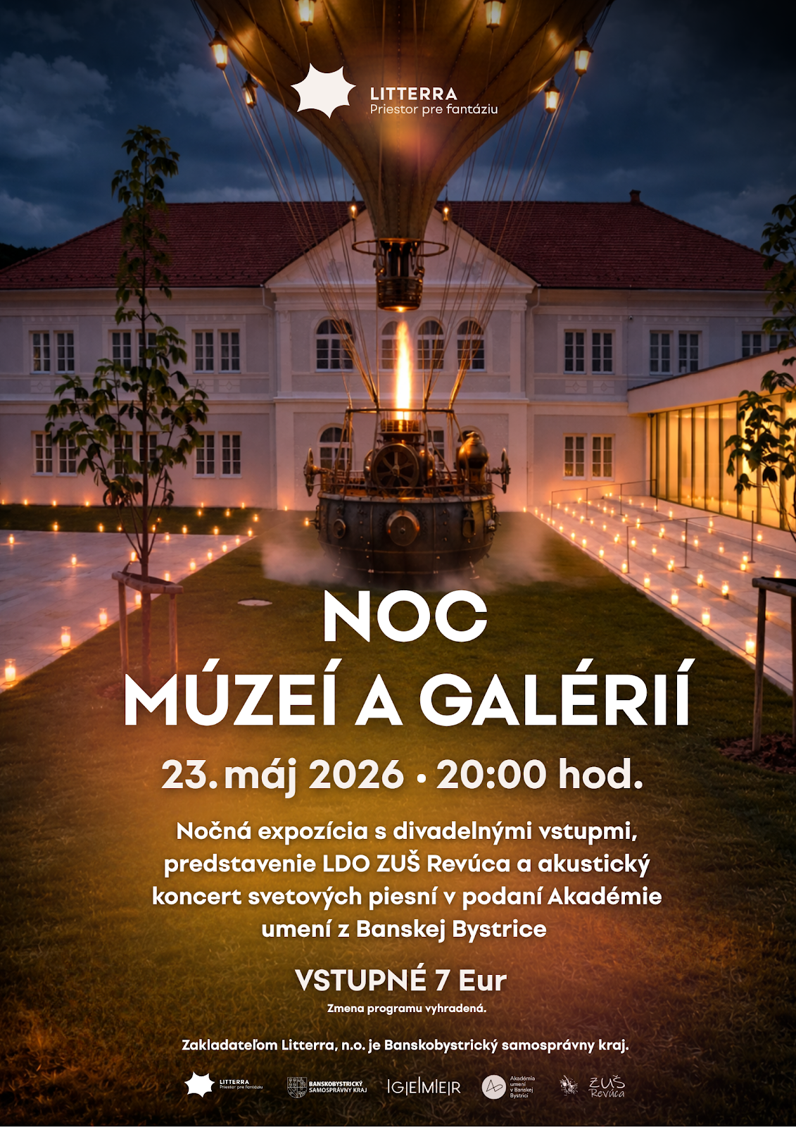 Večer je koncipovaný ako komplexný kultúrny zážitok, ktorý spája divadlo, hudbu a jedinečný priestor Litterry. Nočný formát ponúka nový pohľad na expozíciu a umožňuje vnímať ju v odlišnej svetelnej aj emocionálnej rovine.